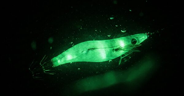 闇夜でエギを認識させるためには、自ら発光する「夜光(グロー)」や、近年人気の「ブルーグロー」の下地が非常に強力です。月明かりがない状況では、これらの自発光が唯一の視覚的情報となり、イカの攻撃を強力に誘発します。