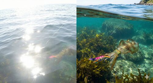 まず最大のメリットは、水中の情報を圧倒的に可視化できる点にあります。水面のギラつき(乱反射)をカットすることで、裸眼では光に遮られて見えなかった海中の様子が驚くほどクリアになります。これにより、イカが潜む藻場や岩礁の位置を正確に把握できるようになります。
