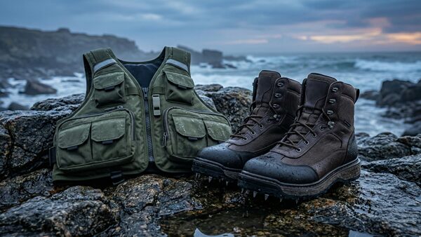 落水時に命を守るだけでなく、ルアーケースを収納する機能性も備えています。また、磯場や濡れた堤防ではスパイクシューズやフェルトスパイクシューズが必須です。足元の滑りは重大な事故に直結するため、予算を削ってはいけない装備です。