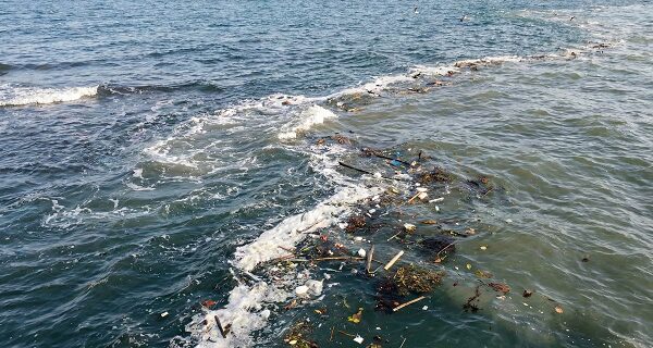 浮遊物(ゴミ・泡)が溜まっている潮目は「収束」の証